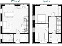 Chata v obci Hrabětice v Jizerských horách: 4 ložnice, celkem pro 10 až 32 osob. Orientační cena (chata za týden): léto 14.600kč, zima 17.600kč.