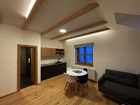 Apartmán v obci Boží Dar: 5 ložnic, celkem pro 1 až 23 osob. Orientační cena (za osobu za noc): léto 525kč, zima 825kč.