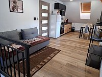 V naší jihočeské zrekonstruované chalupě nabízíme ubytování v komfortně zařízeném mezonetovém apartmánu. Apartmán poskytuje pohodlné ubytování pro 2 až 5 osob a nachází se v prvním patře objektu.