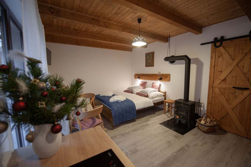 Apartmány Stodola 1 a 2 se nachází v srdci Harrachova v malebné části Anenského údolí, uprostřed lesů, 300m od lanové dráhy na Čertovu horu 1022 m. n. m.