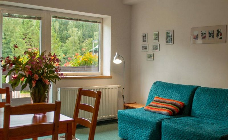 Apartmány jsou umístěny ve zcela nově zrekonstruovaném domě a poskytují vysoký ubytovací standard. Výhled ze dvou apartmánů 1 a 3 je na Čertovu horu, skokanské můstky a sjezdovku, výhled z apartmánu 2 a 4 je do zahrady.