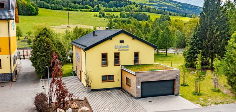 Hosté apartmánů U stezek mohou využít rozsáhlou hotelovou zahradu, ve které naleznete dětská hřiště, discgolf, trampolínu, dětskou lezeckou stěnu,...