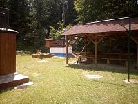 Chata v obci Chmelnice Oslňovice: 4 ložnice, max. 11 osob. Orientační cena (chata za týden): léto 26.000kč.