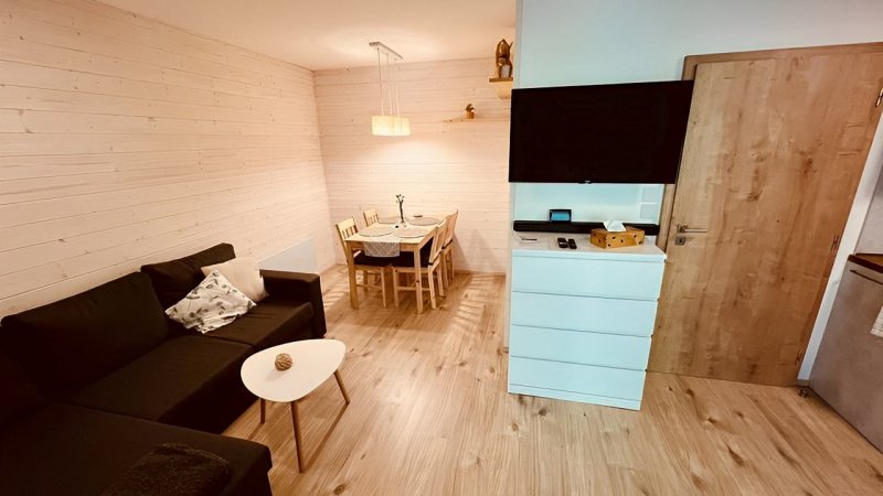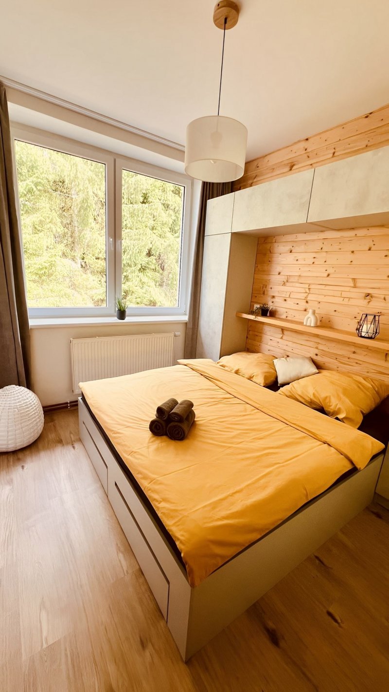 Apartmán 23 se nachází v budově bývalé pohraniční stráže v obci Černé Údolí u Benešova nad Černou a prošel kompletní modernizací. Interiéru dominuje dřevo a přírodní materiály, což podtrhuje jeho útulnou atmosféru. K dispozici jsou dvě ložnice, každá vybavená manželskou postelí a dostatkem úložného prostoru. Společenský prostor spojuje obývací pokoj, jídelní část a plně vybavený kuchyňský kout s mikrovlnnou troubou, lednicí, kávovarem, myčkou a indukční varnou deskou. Moderní koupelna se sprchovým koutem a WC splňuje veškeré požadavky na pohodlí. V apartmánu je k dispozici bezplatné Wi - Fi připojení a před objektem mohou hosté zdarma zaparkovat. Díky poloze na samotném okraji lesa si zde užijete klid a soukromí, a přitom budete mít na dosah jedinečnou přírodu Novohradských hor. Ať už hledáte aktivní dovolenou nebo místo pro odpočinek a únik od ruchu civilizace, Novohradské hory vám nabídnou jedinečný zážitek. Přijeďte si užít atmosféru, kterou jinde jen tak nenajdete!