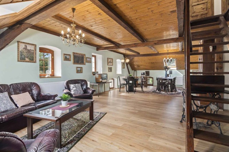 Apartmán v obci Nová Oleška: 1 ložnice, celkem pro 1 až 4 osoby. Orientační cena (apartmán za noc): léto 3.200kč, zima 2.200kč.