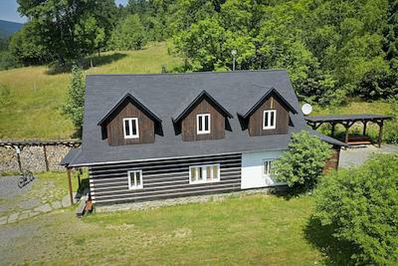 Chalupa v obci Krásná: 5 ložnic, celkem pro 1 až 18 osob. Orientační cena (za osobu za noc): celoročně 420kč.