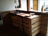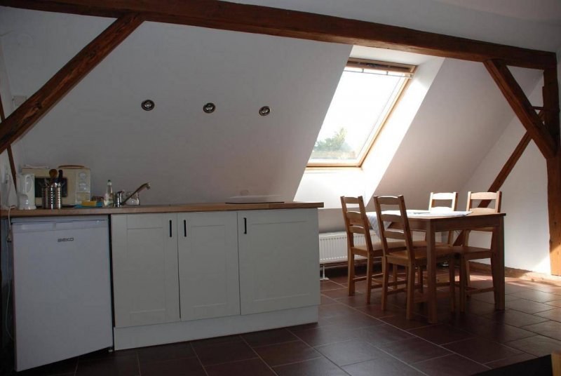 Apartmán v obci Karhule: 1 ložnice, celkem pro 2 až 3 osoby. Orientační cena (za osobu za noc): celoročně 700kč.
