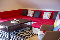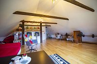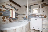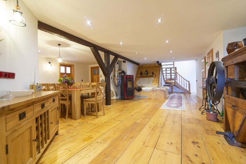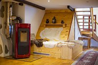 Chalupa Boudův Mlýn - Skuhrov - ubytování na samotě - Vysočina. Podkroví k pronájmu s kapacitou 16 osob se nachází na samotě, jeden kilometr od vesnice Skuhrov, kraj Vysočina. V prvním patře chalupy jsou 4 ložnice, dvě koupelny vybavené sprchovým koutem, toaletou a umyvadlem. Jeden z pokojů má navíc umyvadlo přímo na pokoji. Je zde k dispozici i pračka. Dále je v prvním patře k dispozici plně vybavená kuchyň. Nachází se zde také hala s jídelním stolem a interiérovým kotlem na pelety, kde si můžete odpočinout na ovčích kožešinách u kamen. Ve druhém podkrovním patře je k dispozici jeden pokoj pro 3 hosty, vybaven svou vlastní koupelnou, kde je vana, toaleta a umyvadlo. V objektu jsou k dispozici 2 dětské postýlky. V tomto patře je také hala s posezením, sofa, křesílka a malý dětský koutek. Je zde k dispozici plně vybavený bar i s výčepním zařízením. V obývací hale je také chytrá televize. Všechny pokoje jsou vybaveny vlastní televizí. V objektu je Wi - Fi připojení. V přízemí je možné využít stůl na stolní tenis. Na rozlehlém dvoře je ohniště, venkovní zděná udírna a několik možností, kde se dá posedět. Je zde k dispozici trampolína, dětská houpačka, dětský domeček a menší bazén (na letní sezónu). Ve zdejších hlubokých lesích můžete nejen houbařit, ale můžete zde objevit i studánku s léčivou vodou. Navštívit můžete Lipnici nad Sázavou (16km) s jejím hradem, hrobem Jaroslava Haška, nebo se projít po zdejších lesích. Havlíčkův Brod (9km), s jeho historickými hradbami a muzeem Karla Havlíčka Borovského. Humpolec (27km), zde můžete navštívit místní pivovar Bernard, s vyhlídkovou věží či nedalekou zříceninu hradu Orlík. Žďár nad Sázavou (37km), zde se nachází Zelená hora památka UNESCO, rekreační areál Pilák nebo například zámek Žďár nad Sázavou. Těšíme se na Vás u nás.