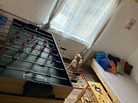 Nabízíme ubytování v chalupě s celoročním provozem v horské obci Černý Důl, cca 6km od Jánských Lázní. K dispozici společenská místnost, kuchyň s myčkou, 3 ložnice, menší odpočinková místnost s hracím koutkem pro děti a stolním fotbálkem, 2 koupelny, 3x wc, terasa s grilem, balkon. Venkovní bazén s ohřevem /provoz v letních měsících/, trampolína, houpačka, venkovní ohniště. Prostor pro uložení lyží/kol/kočárků. Parkování u domu.