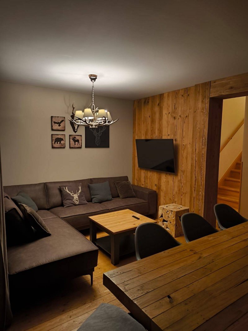 V celém chaletu funguje Wi - Fi připojení, najdete tu i místnost, kam pohodlně uložíte své sportovní vybavení, a patří k němu zastřešené parkovací místo pro dvě auta.