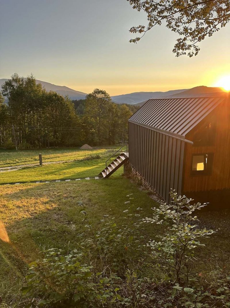 Jsme mladá rodina, která se rozhodla sdílet toto úžasné místo s ostatními a postavila tinyhouse na kopci s dechberoucím výhledem na Šerák, Keprník a Obří skály.