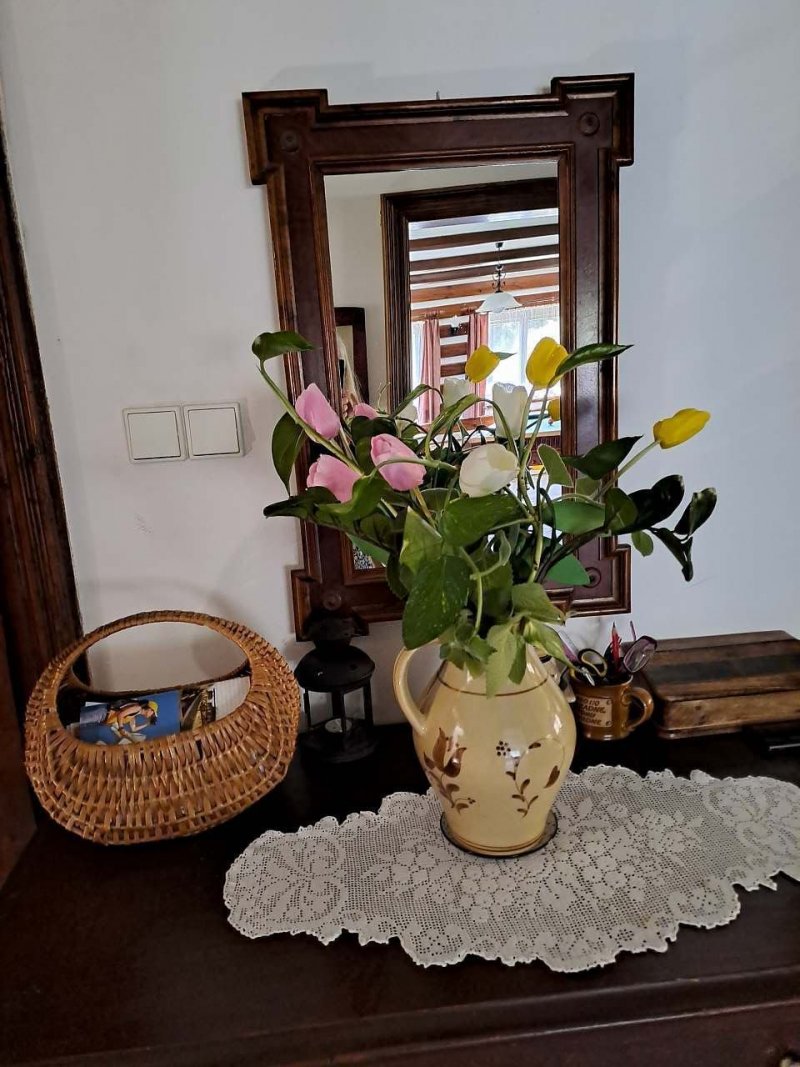 Naši rodinnou, prostorově luxusní (cca 380 m2; WC 5x), nefalšovanou původní a zabydlenou poloroubenou chaloupku cca pro 10 lidí můžete v námi neobsazených termínech využít pro příjemný pobyt, nebo pro toulky po Krkonoších, Jizerských horách i Českém ráji. Je kousíček od Malé Skály (se skalním hradem a mnohými atrakcemi), ve výrazně kopcovitém terénu a v krásné, téměř panenské krajině, kterou navíc neválcují tisíce turistů. Nevšední podkrkonošská útulně zařízená chalupa s původními prvky již z předpředminulého století se nachází 8 km od Jablonce nad Nisou. Není to pouhá napodobenina roubenek, má nenahraditelnou atmosféru a kouzlo starých časů, což v novodobých dřevěnkách najít nemůžete. Zrestaurovaná chalupa, založená sice již okolo roku 1780 a z části i vybavená dobovým udržovaným nábytkem, vyhovuje i dnešním náročným klientům. Díky velké sednici je vhodná pro tématické skupiny, rodiny s dětmi, decentní svatby..... Nemovitost jako celek pronajímáme jednomu ČESKÉMU NÁJEMCI, který jako jediný odpovídá za zaviněné škody na chalupě během probíhajícího pobytu, podepisuje Smlouvu o pronájmu a zajišťuje dodržování navazujících závazných Pokynů. Může si pozvat 9 dalších přátel, pro krátkodobý pronájem je možné se za příplatek dohodnout i na vyšší obsazenosti (až 12 lidí). Domácí zvíře ani kouření uvnitř povoleno není. V objektu je též prostor pro kola a lyže a možnost WiFi připojení. Každý má místa dost i na spaní, žádné palandy. Není to objekt jednorázové spotřeby, proto je třeba respektovat určitá pravidla. V zimě přijedete do již příjemně vyhřáté chaloupky. Nejkrásnější období je květen a červen, čas, kdy vše kolem chaloupky kvete, včetně azalek a rododendronů. Prosím, než si pobyt objednáte, přečtěte si pozorně celý popis. Prezentace je podrobná, včetně cen, prosím proto o dotazy jen vážné zájemce. Můžete mrknout i na naše stránky www. nadrajem. cz.