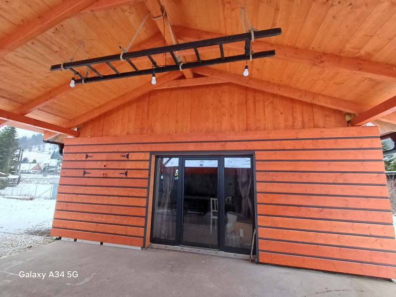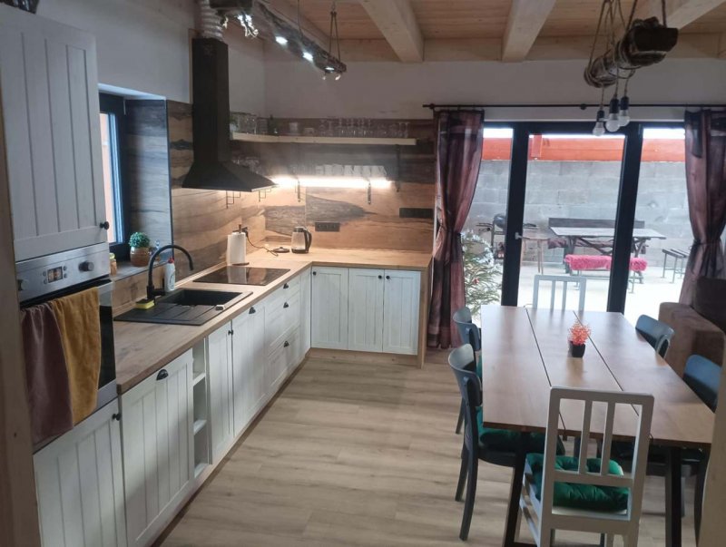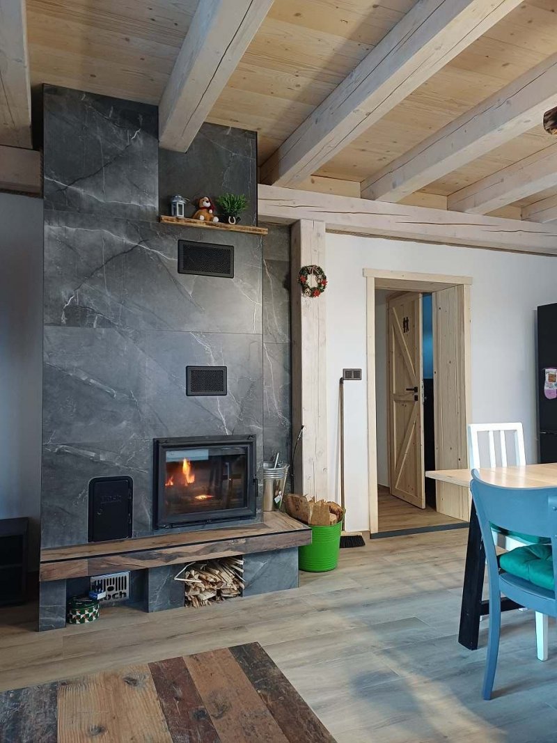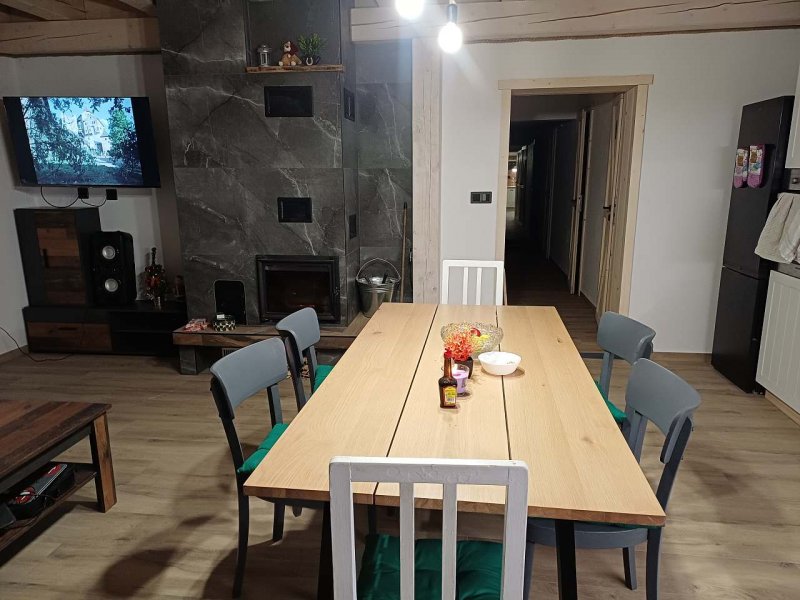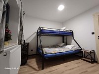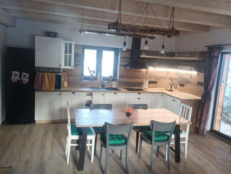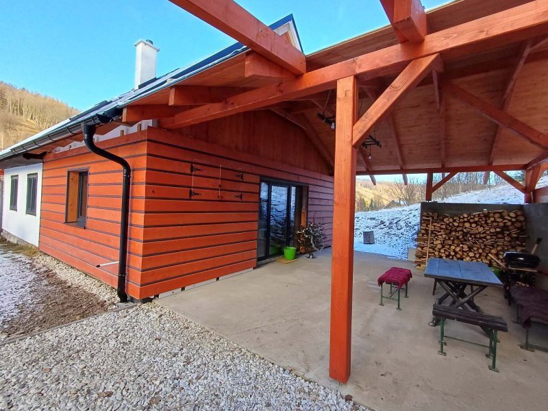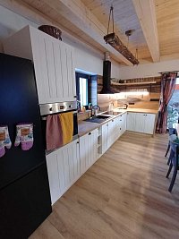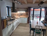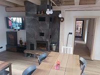 Nabízíme 2 ložnice s 5 postelemi, plně vybavenou kuchyni včetně myčky nádobí, obývák s proskleným krbem a TV, zastřešené venkovní posezení.