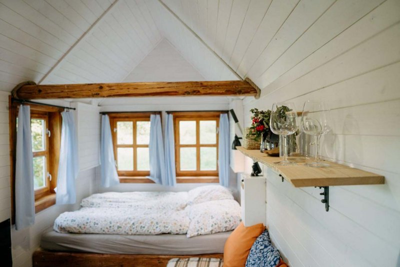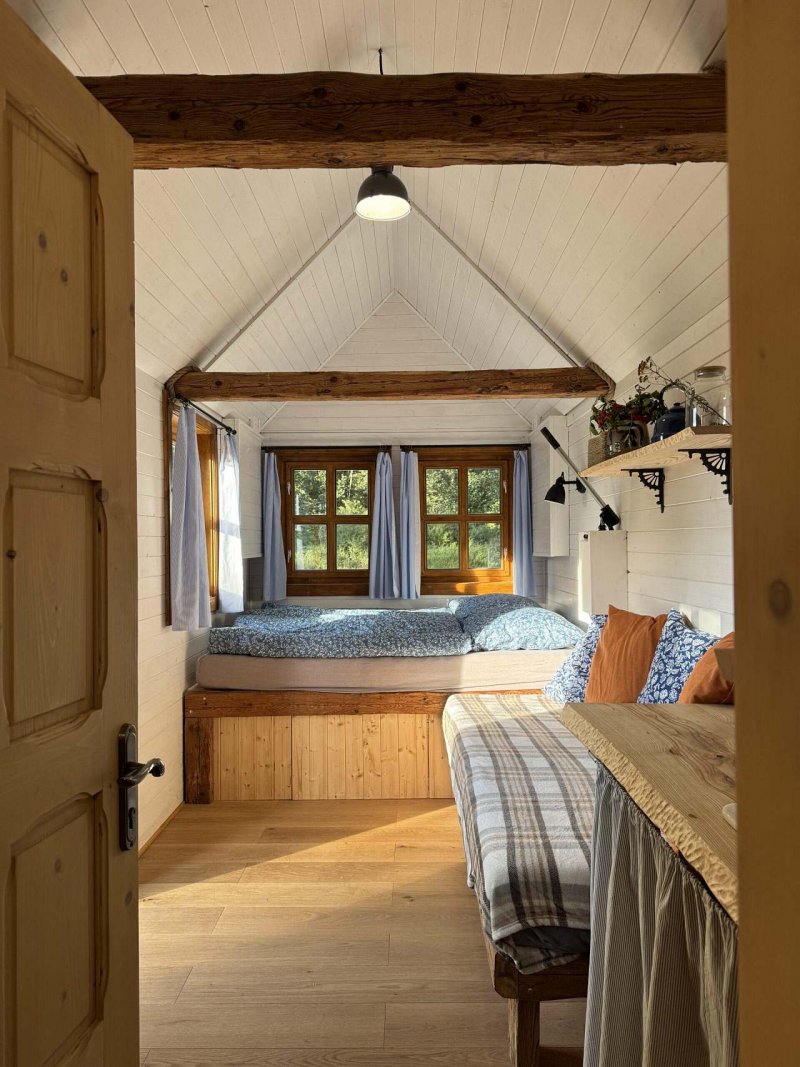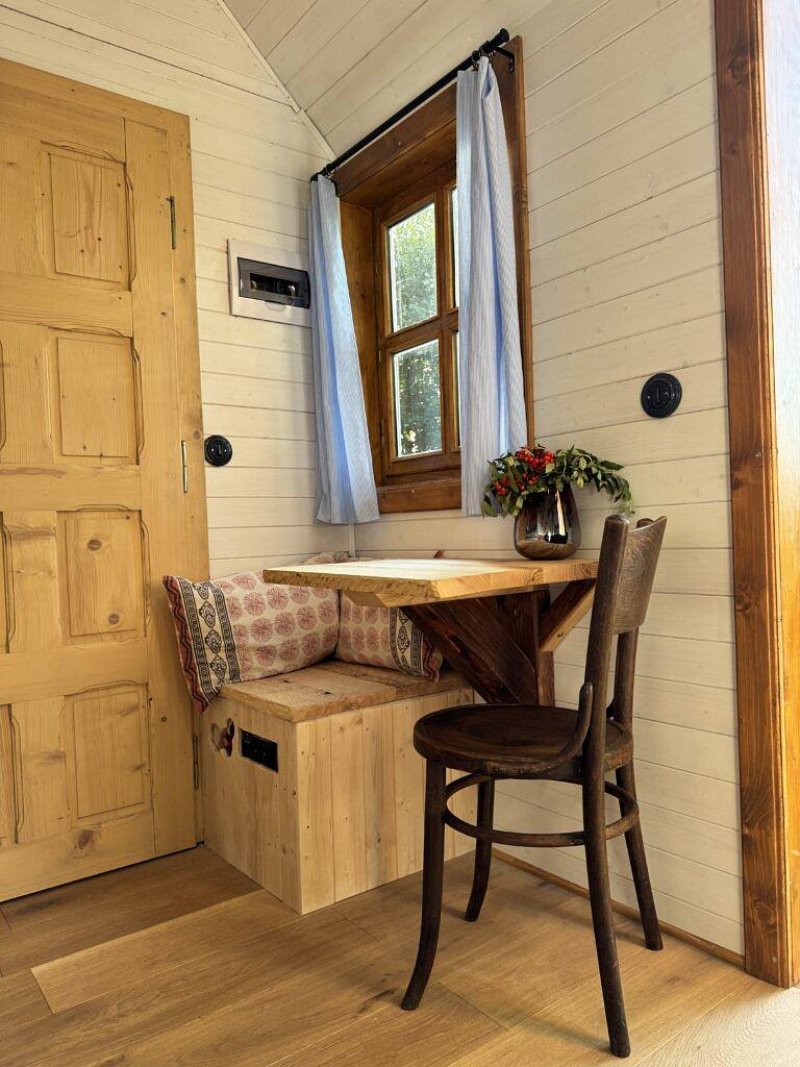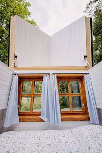 V chaloupce v Břežanech můžete pozorovat hvězdy přímo z postele a to díky odklápěcí střeše. Žádné sousedy tu nenajdete, chaloupka stojí pod lesem u rybníka v malebném Pošumaví. Okolní louky vybízí k dlouhým procházkám s výhledy na Šumavu, koupání je možné v nedalekých zatopených lomech. Příjezd je po zpevněné cestě až na hranici pozemku. Nejbližší město, Horažďovice, se nachází do 7km. A nejbližší obec s obchodem přibližně 1km.