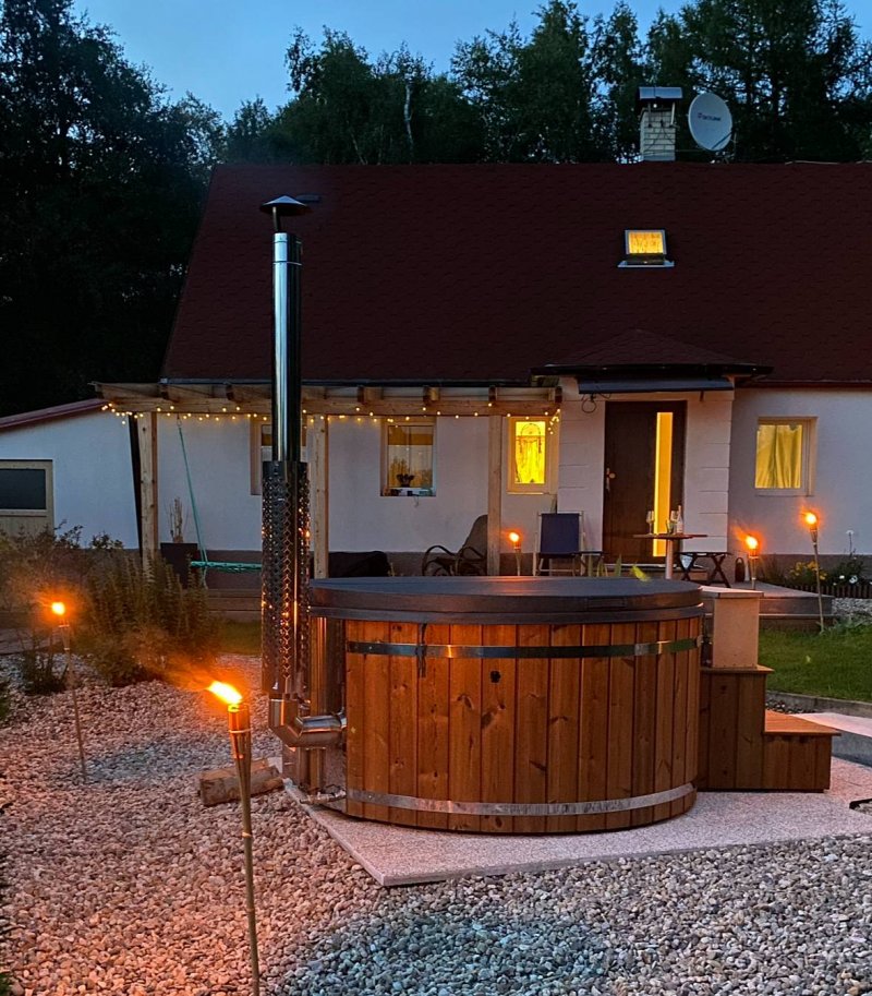 Krásná a útulná wellness chaloupka se nachází přímo u lesa na klidném místě mimo hlavní komunikaci v překrásné krajině v CHKO Labské pískovce nedaleko Národního parku České Švýcarsko.