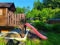 Chalupu najidete na okraji obce Sněžné v Orlických horách. Před vchodem je k dispozici venkovní sezení. Další venkovní posezení, prostorná pergola s grilem na uhlíky a dětské hřiště, najidete za chalupou. Pergola má pevné zastřešení a na stranách plastové plachty, které jdou v létě srolovat. Grilovat tedy můžete i při nepřízni počasí. Dětské hřiště přímo sousedí s pergolou - při posezení v pergole máte děti pod dohledem. Tento prostor je celkově oplocen.