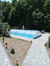 Objekt s dvěma apartmány s kapacitou do 6 osob +1 v nádherné obci Podmolí - přímo u lesa ve středové části Národního parku Podyjí. Příjemné venkovní prostory. Pregola s posezením. Bazén pouze pro vás, který je zastřešen pro příjemnou teplotu. Krb - grill, ohiště a parkování v objektu. Pohádková místa nedotčené přírody pro procházky, cykloturistiku.