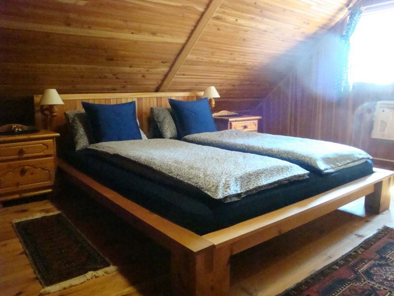 K dispozici je obytný prostor s plně vybavenou kuchyňskou linkou, s rozkládací sedačkou - plnohodnotné 2 - lůžko v přízemí a ložnice s manželskou postelí v podkroví.