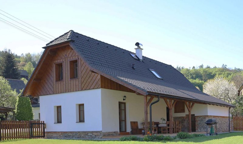 Chata v obci Hostice: 4 ložnice, celkem pro 2 až 10 osob. Orientační cena (chata za týden): léto 25.000kč, zima 16.000kč.