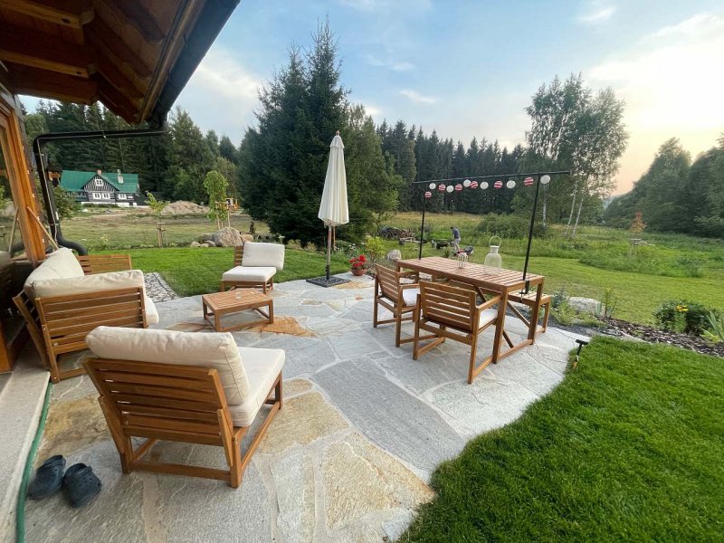 Kochat se pohledem do přírody, skočit na lyže nebo na kolo a pak hodit starosti za hlavu v aromatické sauně s meditační hudbou a vyběhnout přímo do sněhu? Ale ano, v apartmánu v nově postavené chalupě U Tří srnek :-) Budova ve stylu tradiční roubenky s veškerými moderními vymoženostmi se nachází v malebné osadě Mariánská hora nad Albrechticemi v Jizerských horách. Kolem chalupy je okrasná zahrádka s výhledem na les a do přírody. Udržované běžkařské trasy (v létě cyklostezky) o celkové délce 180 km začínají cca 15 minut chůze od chalupy. Pět minut jízdy autem se nachází největší jizerský skiresort Tanvaldský Špičák se dvěma lanovkami a pěti dlouhými sjezdovými tratěmi. V okolí chalupy jsou i vleky pro děti a začátečníky. V blízkosti je rozhledna Světlý vrch, Protržená přehrada, vodopády Jedlová a nekonečné stezky, chodníčky a cesty v neobydlené koruně Jizerských hor. V chalupě pronajímáme samostatný apartmán 1.patře.