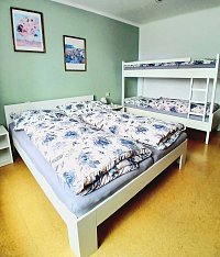 Apartmán v obci Hrčava: 4 ložnice, celkem pro 1 až 16 osob. Orientační cena (za apartmán za noc): celoročně 2.300kč.