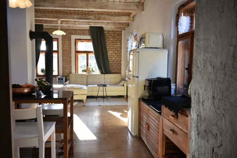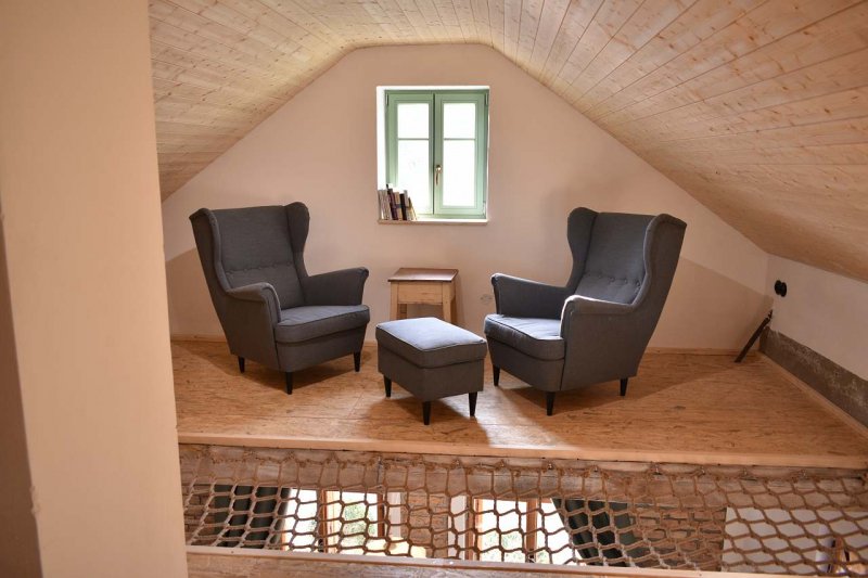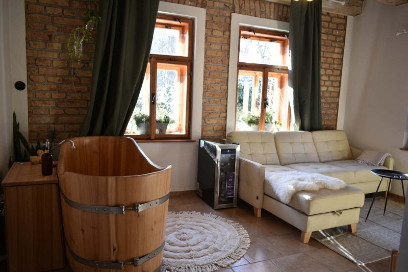 Cihloffka je kouzelná chaloupka po rekonstrukci, kde budete sami a okolní svět můžete vypnout. Kdo měl babičku s chalupou, jistě se mu před chaloupkou vybaví vzpomínky na prázdniny u babičky. Otevřete dveře a dýchne na Vás něco mezi pohodou dnešní doby a kouzlem minulého. Těžko říct, zda to dělají cihly, příjemné světlo pronikající okny, dřevěná vana nebo to, že se topí dřevem v krásných litinových kamnech, které ještě dotvářejí vřelou atmosféru Cihloffky. Při nepříznivém počasí můžete jednoduše zalézt do vany, koukat z ní na Netflix a sáhnout si pro víno do naší vinotéky, nebo lenošit v naší originální pochozí síti.