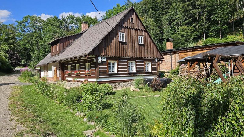 Chalupa v obci Černý Důl: 5 ložnic, celkem pro 2 až 12 osob. Orientační cena (chalupa za týden): léto 16.000kč, zima 24.000kč.
