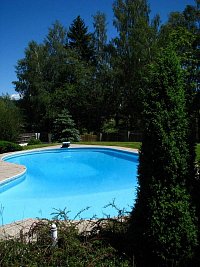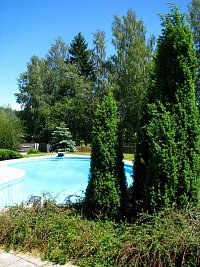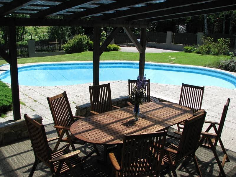 Mezi nadstandardní vybavení chalupy patří například venkovní bazén, vířivka pro 5 osob, masážní box, cyklotrenažér atd.