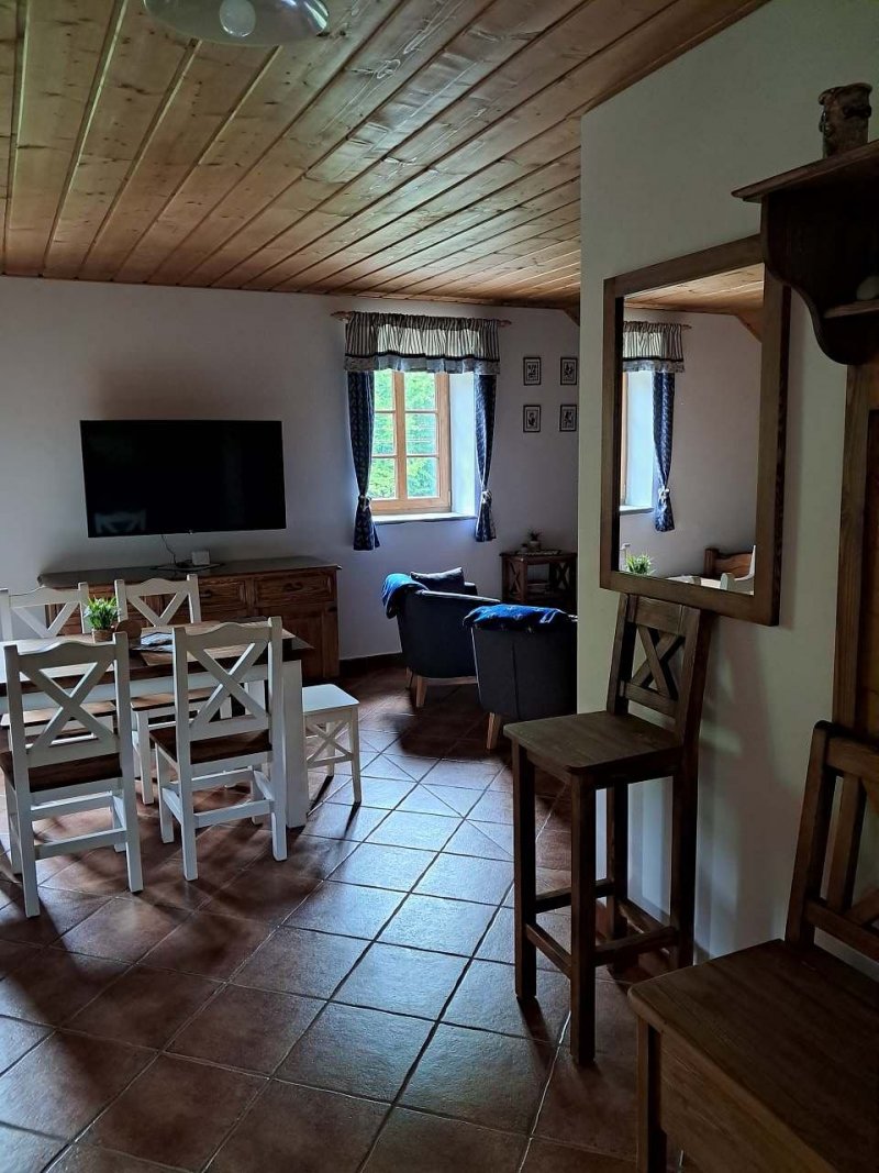 Krásná, nově zrekonstruovaná chalupa, přímo u sjezdovky, nabízí prostor pro 1 - 9 osob, ideální pro rodiny i dvojice(sleva na pobyt v pro 1 - 3 osoby, popř. 1 - 6 osob, neplatíte za neobsazené prostory celé chalupy). V chalupě jste vždy sami, pronajímáme vždy jen jednomu zájemci. K pronájmu slouží horní patro. Ceny jsou úplně dole na této stránce.