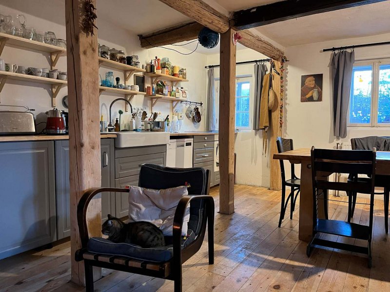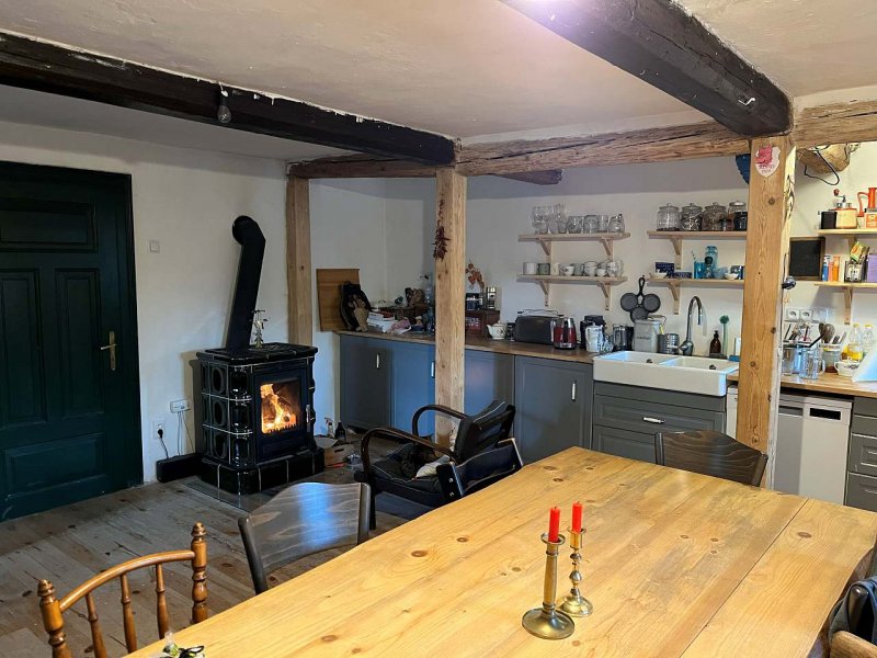 Skutečný genius loci! Tato rozlehlá chalupa z počátku 19.stol. citlivě spojuje historickou krásu s potřebným pohodlím současnosti. Z části roubené a z části zděné stavení nabízí 3 ložnice v patře a velkou kuchyni s krbovými kamny v přízemí.