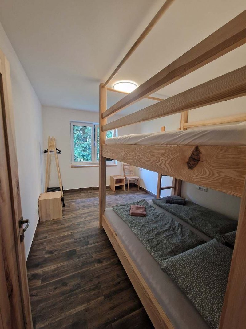 Chata v obci Červená Voda: 2 ložnice, celkem pro 1 až 7 osob. Orientační cena (chata za týden): celoročně 13.000kč.