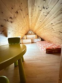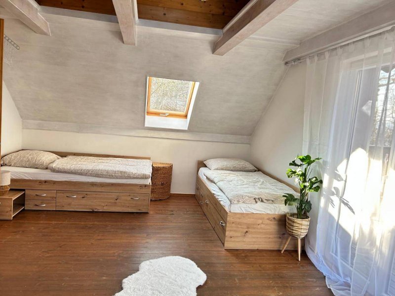 Kapacita pro 8 osob, 2 útulné ložnice. Obývací pokoj s kachlovými kamny a plně vybaveným kuchyňským a jídelním koutem. Koupelna se sprchou, samostatné WC. Sauna pro chvíle odpočinku. Exteriér: 2 prostorné terasy + velký balkón s nádherným výhledem na přehradu. Venkovní posezení s grilem a krbem. Zahrada obklopená klidnou přírodou. Přijeďte načerpat energii do srdce přírody s výhledem na klidnou hladinu přehrady.