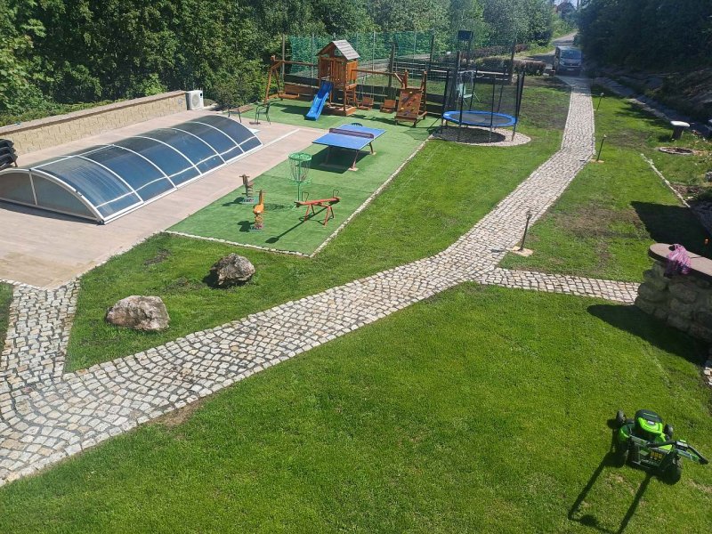 Objekt je luxusně vybaven, má dostatečně velký pozemek na sportovní i relaxační využití, jak ve vyhřívaném bazénu, tak v plně vybaveném pískovcovém altánku. K pozemku náleží parkoviště pro 6 aut.