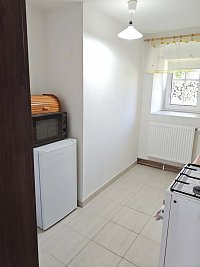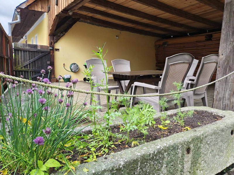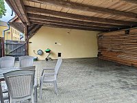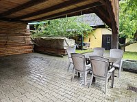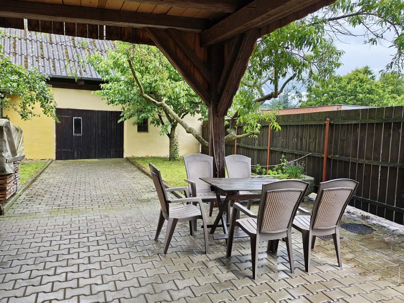 Přímo proti chalupě se nachází obecní oplocený areál s dětským hřištěm, venkovním posezením a hospodou.