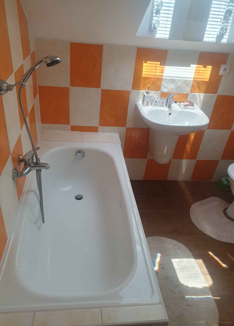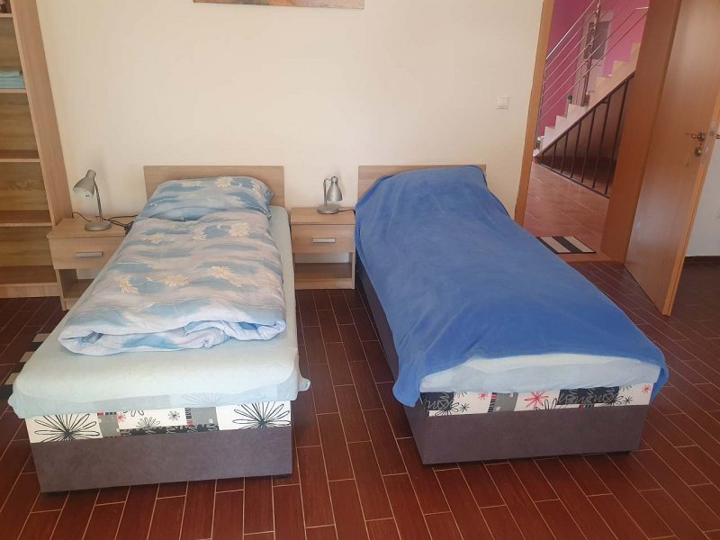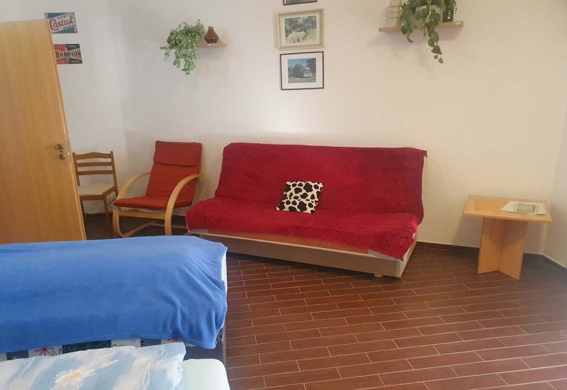 Zděný dvourodinný dům. Přízemní s rozšířeným obyvatelným podkrovním, kde máme 4 pronajímané pokoje: A pro 4 osoby a přistýlka; pokoje B a C se 2 pevnými lůžky zky, v přízemí je pokoj P se dvemi věrnými lůžky a přistýlkou.