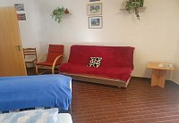 Chalupa v obci Lednice: 3 ložnice, celkem pro 2 až 10 osob. Orientační cena (za osobu za noc): léto 500kč, zima 600kč.