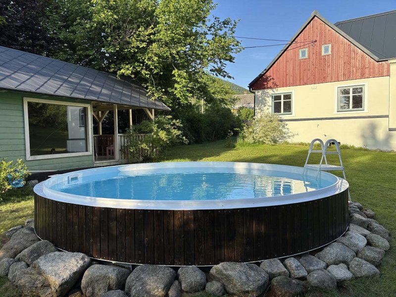 Chata v obci Lázně Libverda: 3 ložnice, celkem pro 1 až 8 osob. Orientační cena (chata za týden): léto 23.000kč, zima 20.000kč.