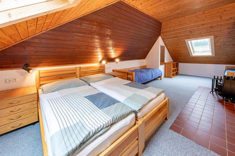Apartmán v obci Černá v Pošumaví: 10 ložnic, max. 30 osob. Orientační cena (za apartmán za noc): celoročně 2.500kč.
