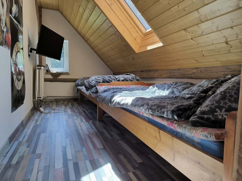 Zažijte pohodový pobyt v útulné chalupě v obci Brandov, jen pár kroků od hranic s Německem. Chalupa nabízí komfortní ubytování pro až 8 osob – k dispozici jsou dvě samostatné ložnice a dětský pokoj v podkroví, ideální pro rodiny s dětmi. Na prostorné zahradě si užijete vyhřívaný bazén se slanou vodou, pergolu s udírnou a grilem, kde si můžete připravit něco dobrého a posedět až do večera. V chladnějších dnech oceníte krbová kamna, která vykouzlí příjemnou atmosféru.