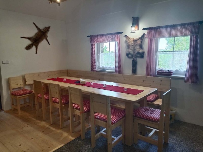 Srdcem chalupy je plně vybavená kuchyně a velké posezení. Samozřejmostí je koupelna se sprchovým koutem, umyvadlem, WC a ručníky. V obývacím pokoji je pro hosty připraven pohodlný gauč, na kterém se v případě potřeby vyspí dvě osoby. Dále velká televize, X - BOX 360 + Kinect a krbová kamna. V přízemí se nachází jeden čtyřlůžkový a jeden třílůžkový pokoj a v patře jeden čtyřlůžkový. Všechny pokoje jsou vybaveny elektrickým topením.