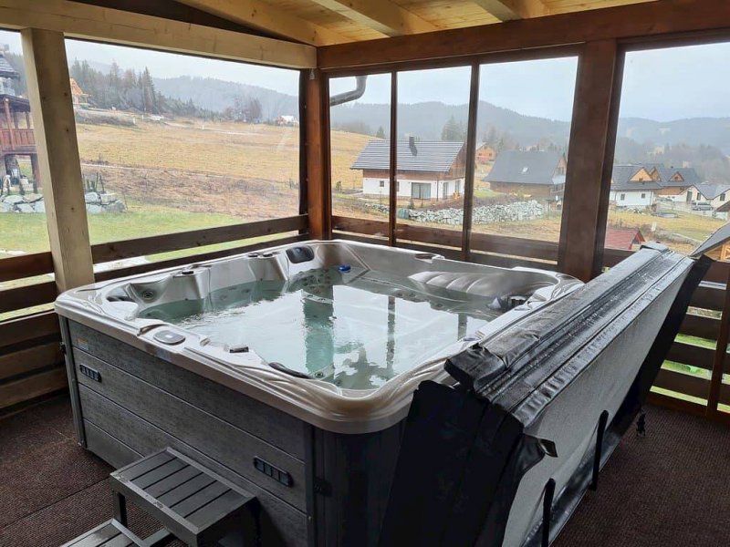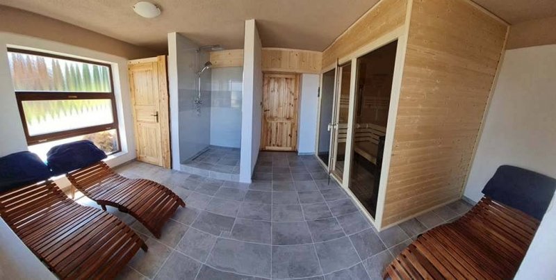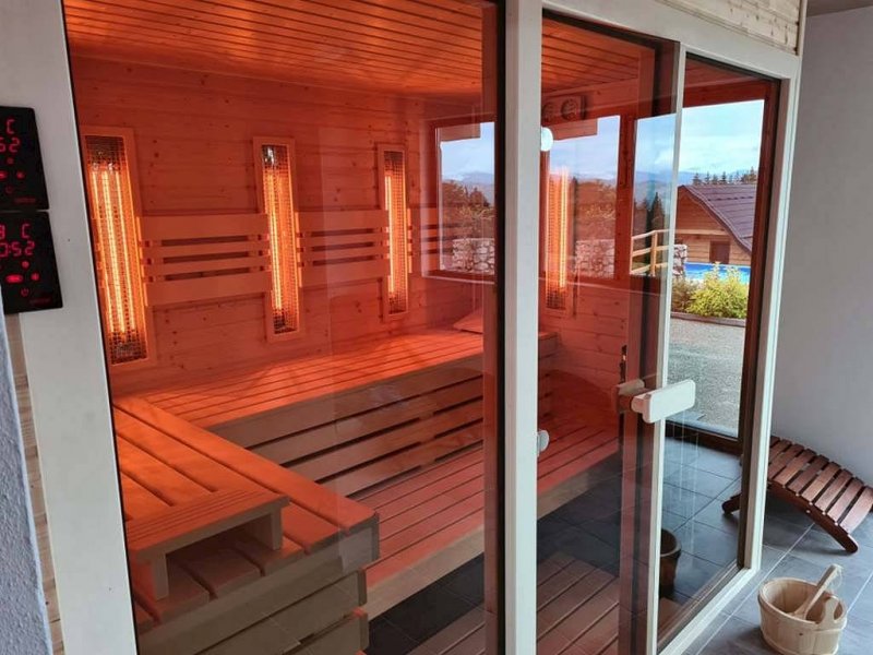 Súčasťou chaty je aj wellness centrum, kde si môžete oddýchnuť v saune alebo vírivke. Vo vonkajšej časti nájdete terasu, bazén na letné osvieženie a pre deti je pripravená trampolína. K dispozícii je aj gril a vybavenie na prípravu guláša v kotlíku.