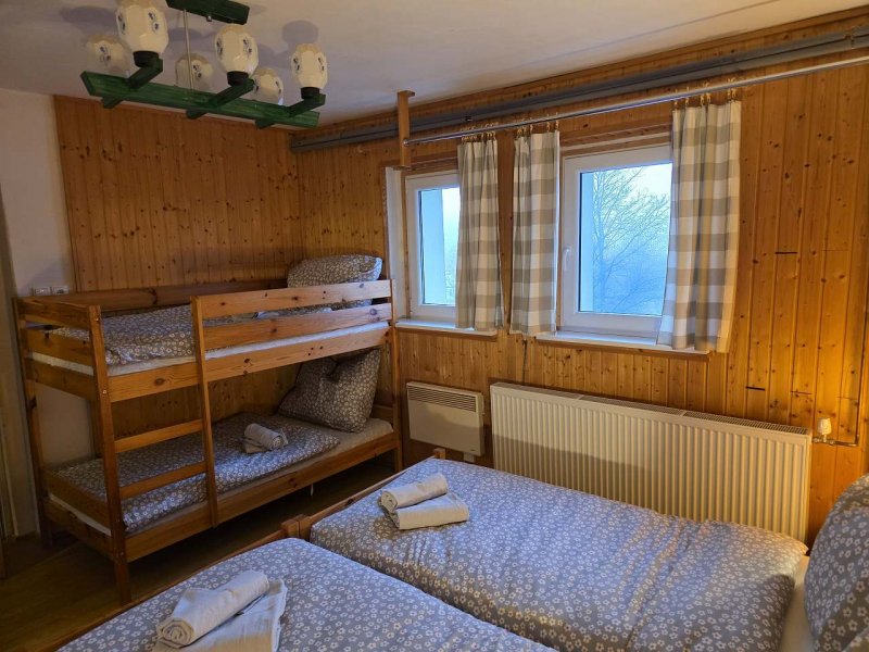 Nabízíme pronájem velké horské chalupy Lázeňka v Perninku, ideální pro rodiny i skupiny přátel. Co vás čeká: Kapacita 25 lůžek v 8 útulných pokojích. Každý pokoj má vlastní sociální zařízení. 4 pokoje jsou navíc vybavené vlastní čajovou kuchyňkou. Plně vybavená centrální kuchyň + jídelna pro celou skupinu 25 osob (kuchyň je před rekonstrukcí, ale vybavená novými spotřebiči - americká lednice s výrobníkem ledu, myčka, velký sporák, překapávač na kávu, topinkovač). Nově zrekonstruovaná kuchyň spojená s obývákem pro cca 10 osob – ideální místo pro společná posezení, kuchyň vybavená ledničkou, myčkou a troubou s varnou deskou. Společenská místnost s kulečníkem (případně stolním tenisem dle dohody). Proběhla renovace horní fasády a obývacího pokoje s kuchyní, zbytek domu si drží autentický horský retro styl s původním dřevěným obložením. Pernink nabízí perfektní podmínky pro zimní radovánky – běžky, sjezdovky, zimní výlety i hospůdky.