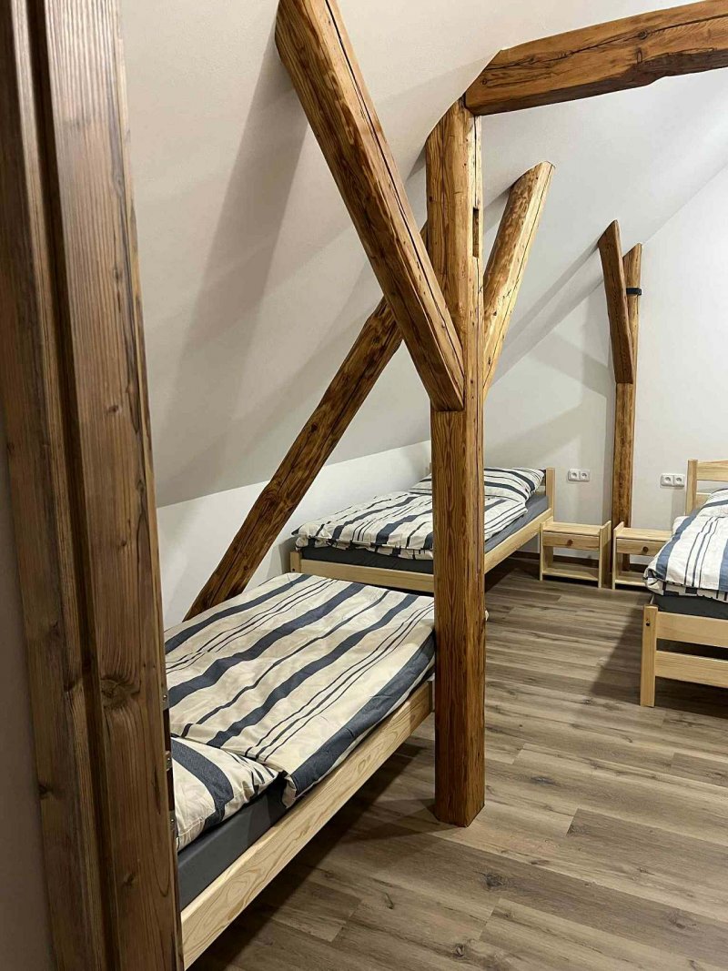 Srub v obci Olešná na Moravě: 4 ložnice, celkem pro 1 až 10 osob. Orientační cena (srub za týden): léto 29.000kč, zima 22.000kč.