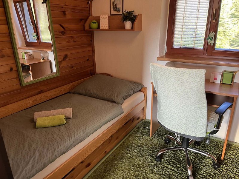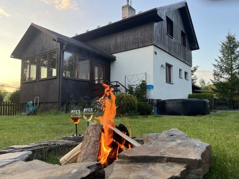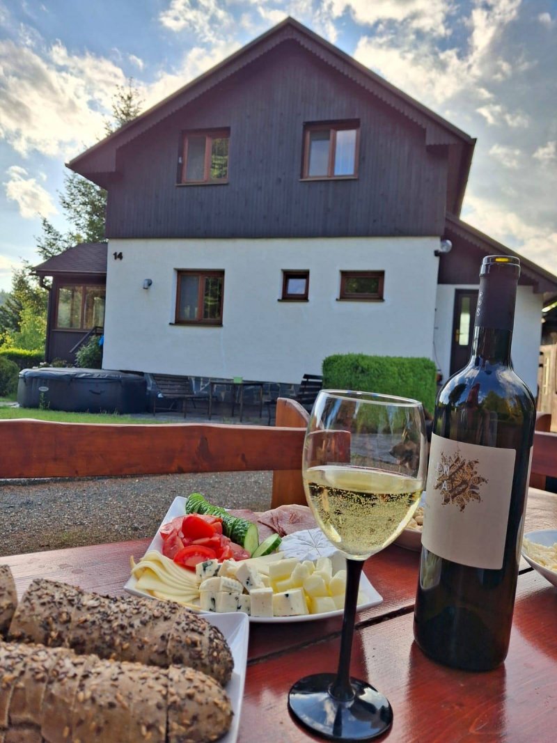 Chata se nachází na vrcholku břidlicové haldy, odkud je krásný výhled na okolní lesy. Je vhodná pro rodiny s dětmi, relaxovat můžete ve venkovní vířivce a přivítáme také pejsky (kočičky), jelikož je zahrada celá oplocená. Společně na pozemku se nachází i srub, který má další dvě místa k přespání. Pokud bude srub pronajat v rámci jedné rezervace spolu s chatou, je na něj 50% sleva a je možné ubytovat celkem 8 osob. Ve srubu je vnitřní vířivka a infrasauna. K dispozici Vám bude plynový gril nebo ohniště u kterého večer můžete pozorovat nebe plné hvězd. Ráno můžete posnídat venku a v případě nepříznivého počasí využít i kryté posezení. Parkovat budete přímo u chaty. V blízkosti se nachází dvě restaurace a v letním období i lesní bar. Procházkou dojdete k řece Moravici, která je vhodná pro rybáře nebo v horkých dnech jako příjemné osvěžení. Místo je ideální také k provozování turistiky, cykloturistiky, myslivosti a houbaření. Projděte si břidlicovou stezku a zjistěte jak se těžila břidlice, navštivte bývalé Janské lázně, přehradu Kružberk nebo nedalekou Slezskou Hartu. Na rozhlednu ve Starých Těchanovicích nebo na zříceninu hradu Vikštejn se třeba vydejte na kolech. V zimním období jsou otevřeny dva SKI areály Guntramovice a HEI Park Tošovice. Také můžeme pomoci s provozováním rybaření a myslivosti.