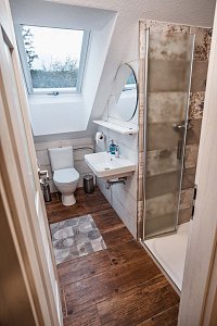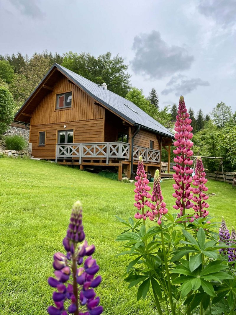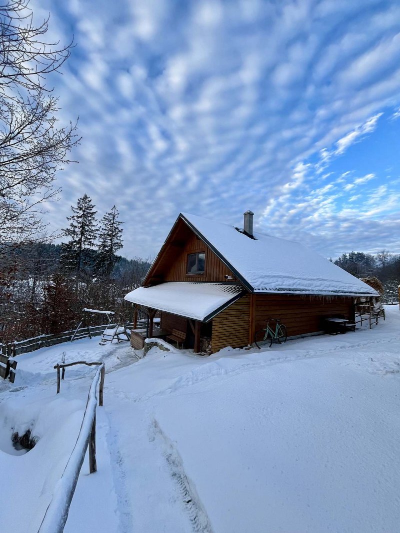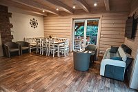 Nově postavená chaloupka pro 8 osob v rustikálním stylu. Přírodní materiály dřevo a kámen převládají.