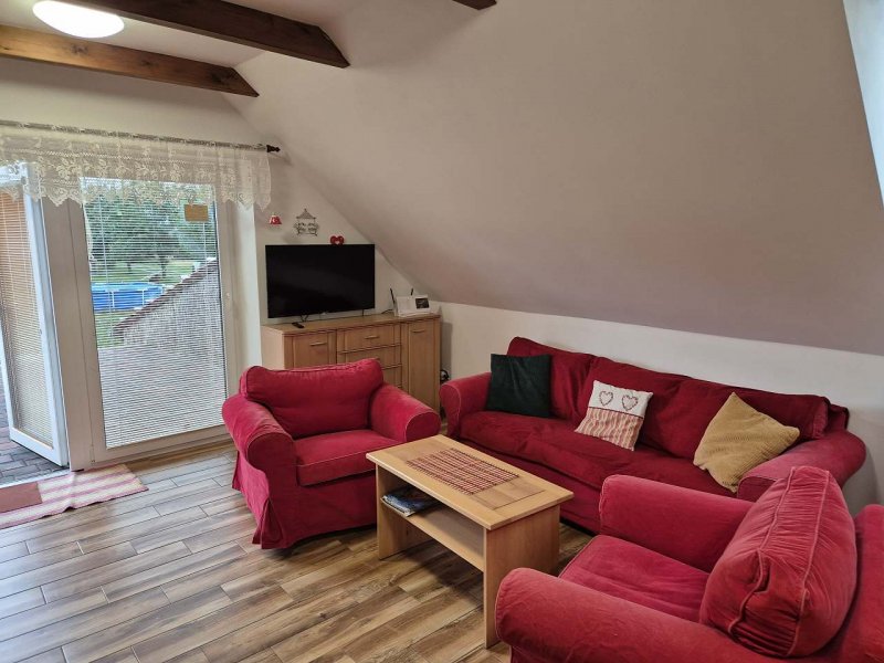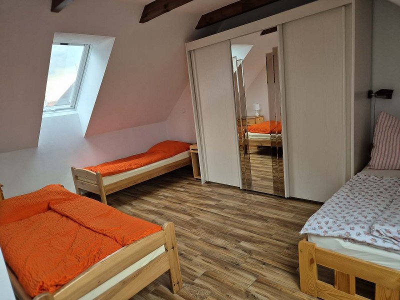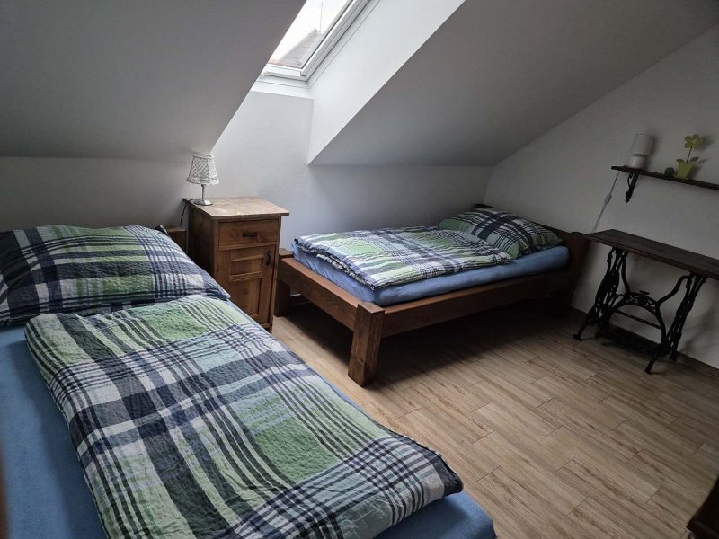Jedná se o nově rekonstruované ubytování v podkroví objektu se samostatným vstupem a terasou. K dispozici je venkovní posezení. Pro hosty s miminkem je k dispozici dětská postýlka a jídelní židlička.