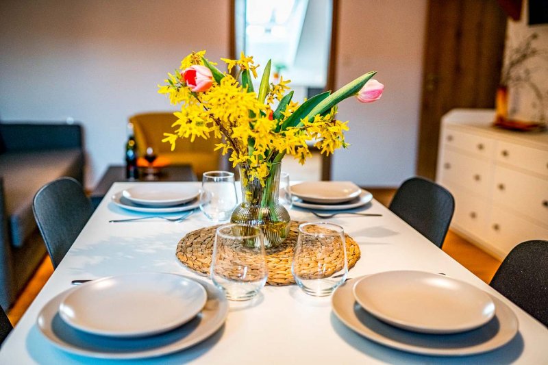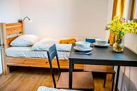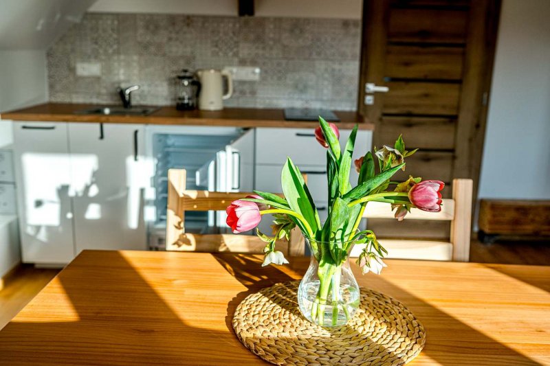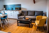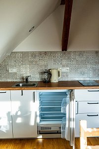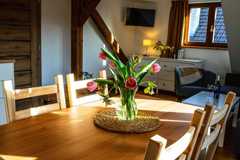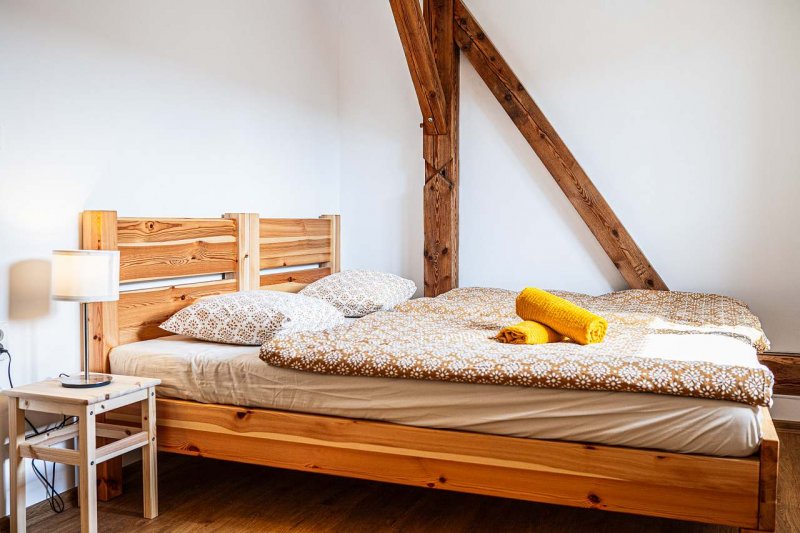Vítejte ve vesnické usedlosti v Chalupě na konci ulice na Stráních v Deštné, domě, který má již 159 let v držení rod Hojerů. Historie gruntu sahá hluboko do středověku, neboť právě v těchto místech byly pro svou strategickou polohu založeny první domy městečka Deštná. Stával tu dům chudý i statek značné hodnoty. Dům radostný s úrodným sadem a bzučícími včelami i dům smutný se sežehnutými střechami, když se několikrát za svou existenci neubránil ohni. Stavení jsme zrekonstruovali a vybudovali podkrovní apartmány. Podkroví je kompletně nové, zařízené v moderním jednoduchém stylu. Přízemí kopíruje původní dispozice domu. Rekonstrukce moderními postupy byla provedena šetrně vůči životnímu prostředí, využíváme především alternativní zdroje energie. K úklidu používáme ekologické přípravky a třídíme odpad.