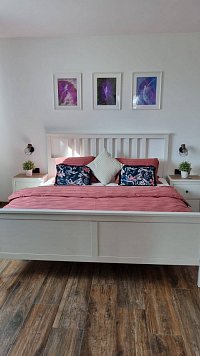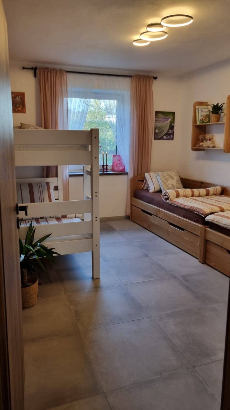 Chalupa na kopci 106 – Chcete být mezi prvními, kdo se u nás ubytuje? - Moderně vybavená chalupa po rekonstrukci nabízí pohodlné ubytování pro 4 - 6 osob v apartmánu v přízemí. Ideální pro rodinu nebo menší skupinu přátel, kteří hledají klid, přírodu a společné zážitky. Bezpečné a klidné místo pro odpočinek s výhledy do Orlických hor a večerní relax pod hvězdami s vůní lesa. Místo kde společné chvíle mají svůj klidný rytmus a kde se setkává venkovský půvab, pohodlí a dotek umění originálních obrazů Jarmily Rollerové. Chalupa se nachází ve středu obce daleko od hlavní silnice na samém okraji lesa. Součástí je rozlehlý oplocený pozemek s velkou zahradou, ohništěm a posezením, možností úschovy kol a lyží. Za chalupou se rozprostírají louky a pole, kam se chodí srnky pást a dohlédne jen ticho. U nás si to užijete o stošest.