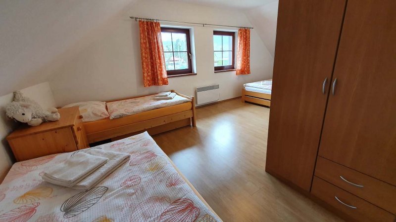 Chalupa v obci Frenštát pod Radhoštěm: 3 ložnice, celkem pro 2 až 12 osob. Orientační cena (za osobu za noc): celoročně 900kč.