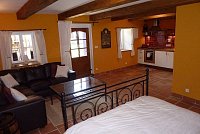 Typicky jihočeské zemědělské stavení sestávající ze dvou budov a uzavřeným dvorem, na vlastním rozlehlém pozemku (26.000 m2). Pozemek tvoří udržovaná zahrada, louky, jabloňový sad, potůček a les. Chalupa se skládá ze dvou samostatných budov, z čehož jedna je k pronájmu a druhá je trvale obydlena. Každá s vlastním vchodem a společným dvorem, kde je Vám k dispozici posezení pod zastřešenou pergolou nebo na slunné terase. Luxusně zařízený apartmán pro 2 - 5 osob se nachází v 1.patře a je přístupný z prostorné terasy (27m2), s překrásným výhledem do údolí. Druhý samostatný apartmán pro 2 osoby je umístěný v přízemí. Chalupa se nachází doslova na samotě u lesa, uprostřed krásné přírody, v bezprostřední blízkosti Bezdrevského potoka, na úplném konci malebné vesničky Brusná, u města Lhenice. Více na [www.brusna.cz].